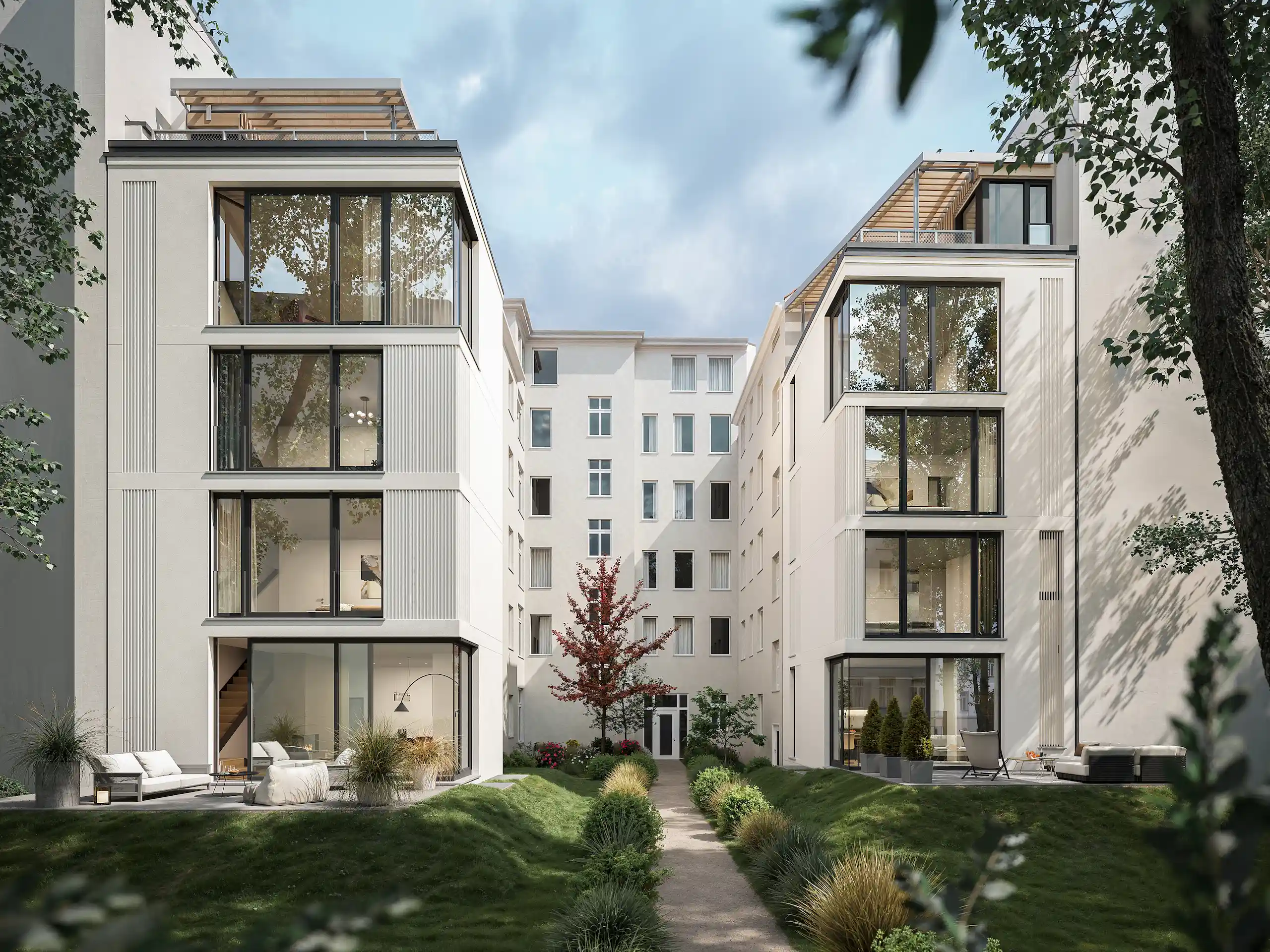 Eingebettet in ein eindrucksvolles Ensemble denkmalgeschützter Berliner Altbauten mit prachtvoller Fassade, verbindet THE PLAN historischen Charme mit moderner Architektur und exklusivem Wohnkomfort.