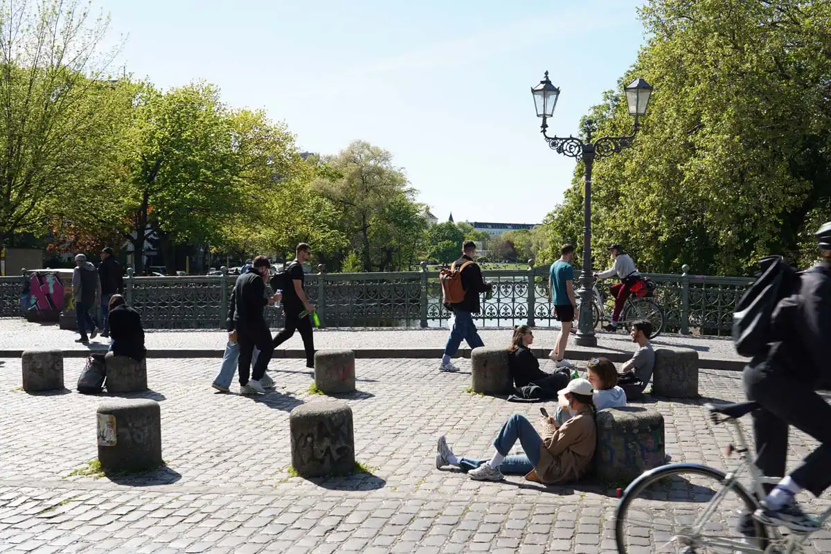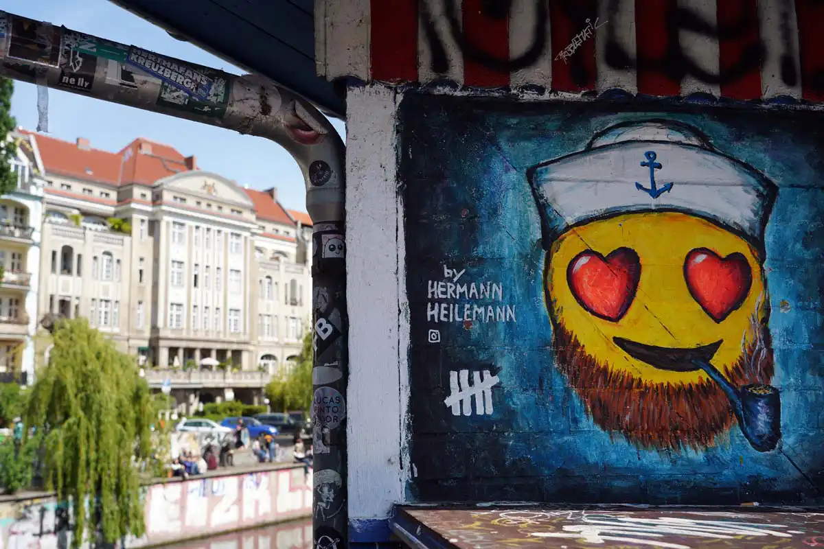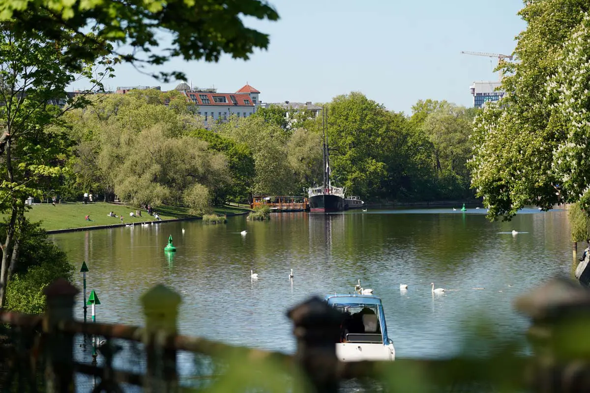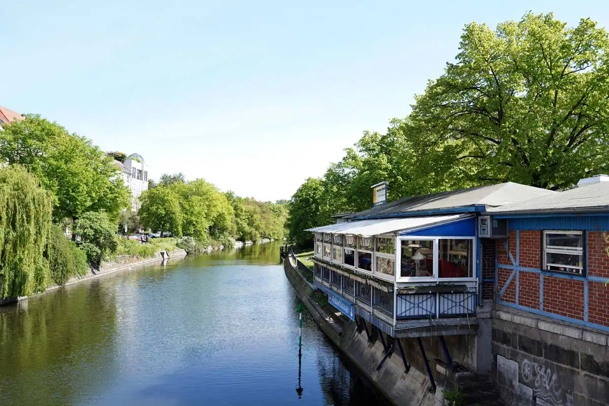 Nur wenige Schritte entfernt lädt das grüne Ufer des Landwehrkanals zum Spazieren, Joggen oder Verweilen ein. Am Maybachufer findet zweimal wöchentlich der beliebte Wochenmarkt statt – ein Hotspot für frische Lebensmittel, Streetfood und Kunsthandwerk. - Paul-Lincke-Ufer